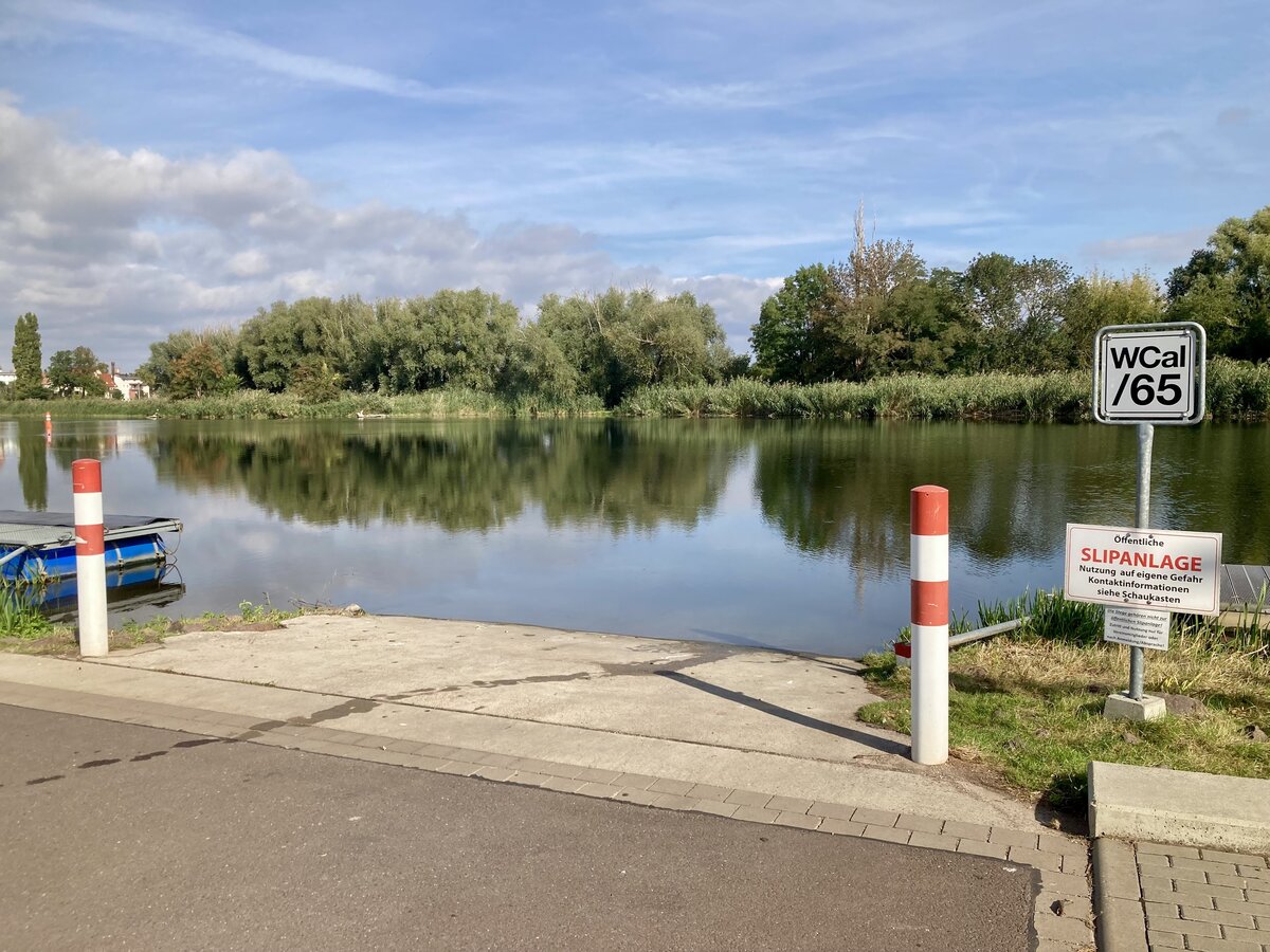 Die Slipanlage in Calbe (Saale) war zunächst gemäß Vorgaben der Wasserstraßen- und Schifffahrtsverwaltung des Bundes mit einer Kette gesichert. Im Jahr 2021 wurde diese Sicherung wieder entfernt, nachdem die Behörde keine weitere Notwendigkeit dafür festgestellt hatte. Aktuell steht die Slipanlage Bootsfahrern zur Verfügung, um Boote ins Wasser zu bringen.