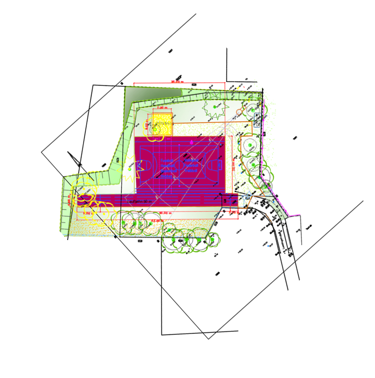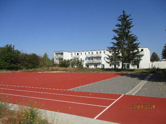Die Erd- und Wegearbeiten begannen am 14.10.2019 als Vorbereitung für den Sportflächenbelag und für die Vegetationsflächen. Hinter dem Spielplatz der Lessingschule wurde eine 50 m lange Laufbahn, eine Weitsprunganlage mit 2 Absprungbalken und ein 15 m x 30 m großes Kleinspielfeld aus Kunststoffbelag errichtet. Für den Ballweitwurf steht eine Abwurffläche zur Verfügung. 2 Kleinfeldtore und 2 Netzpfosten für Feder- oder Volleyball komplettieren das Spielfeld. Die Süd-West Seite wurde angeböscht und der Rest mit einem Stabgitterzaun umgeben. Die Arbeiten waren am 9.11.2020 mit der technischen Abnahme der Zaunarbeiten beendet.