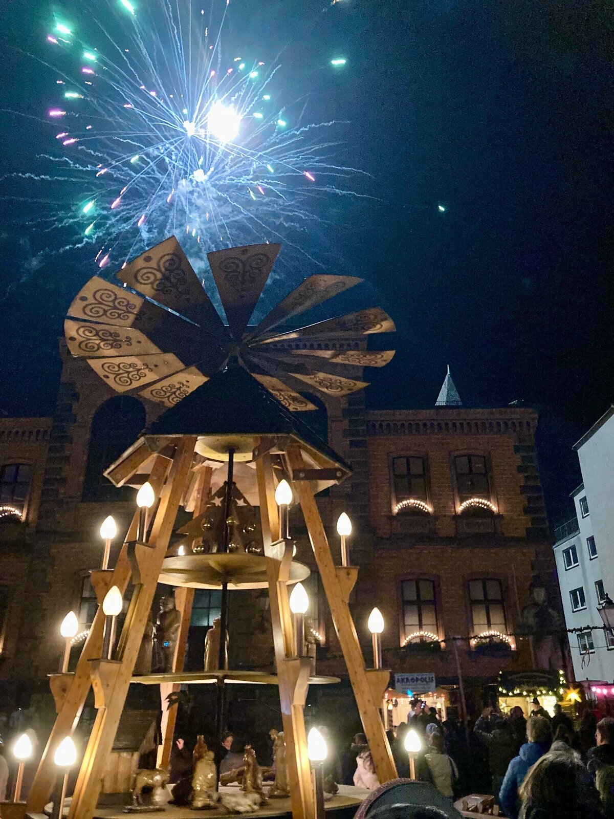 Ein weiterer Höhepunkt war das mit Spannung erwartete Feuerwerk, das pünktlich um 20:00 Uhr den Himmel über dem Rathaus in ein buntes Farbenmeer verwandelte. Besonders für die Kinder gab es zahlreiche Attraktionen, wie den Besuch des Weihnachtsmanns, Karussellfahrten und eine kleine Eisenbahn, die die Augen der Jüngsten zum Leuchten brachten.