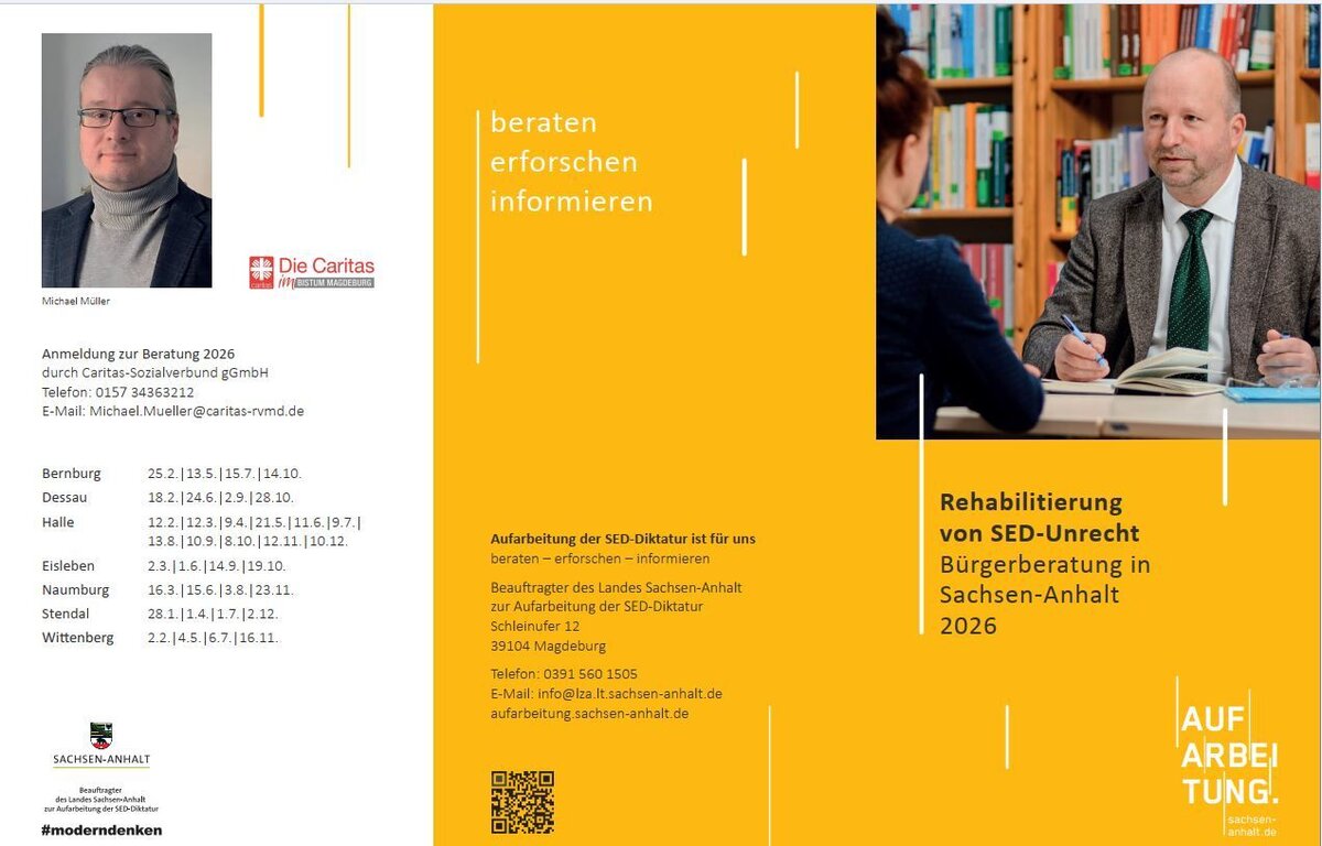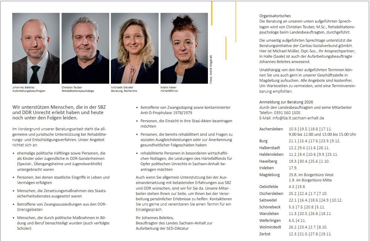 Sprechtage 2026 - Beauftragter des Landes Sachsen-Anhalt zur Aufarbeitung der SED-Diktatur lädt ein